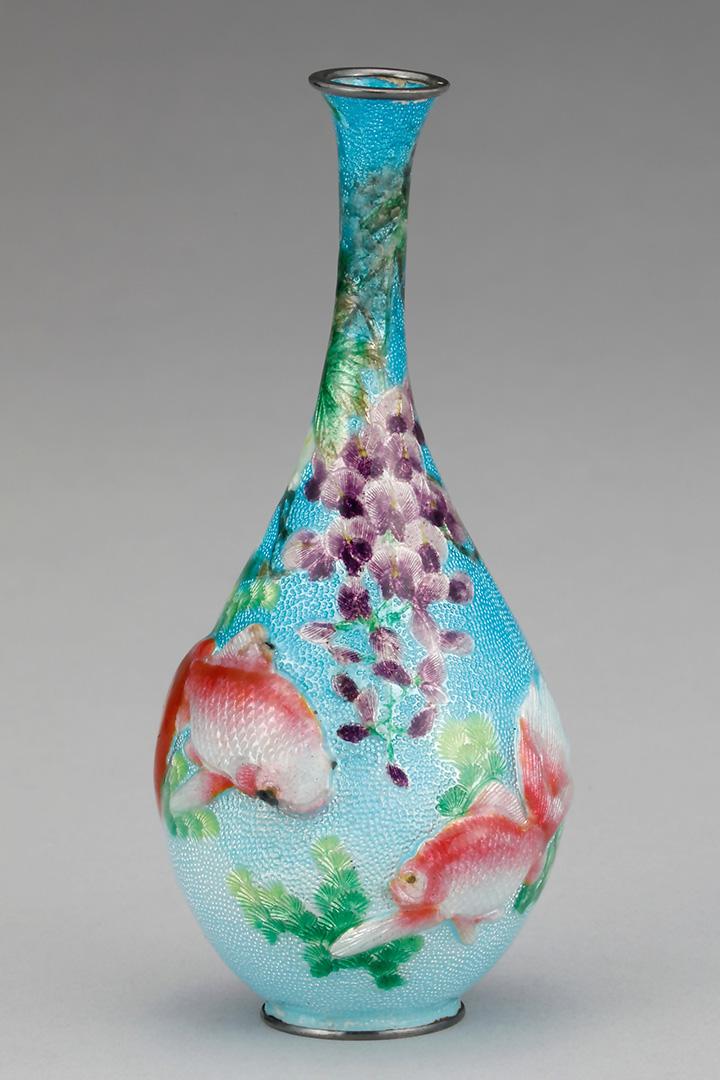 《銀胎無線七宝藤金魚図花瓶》